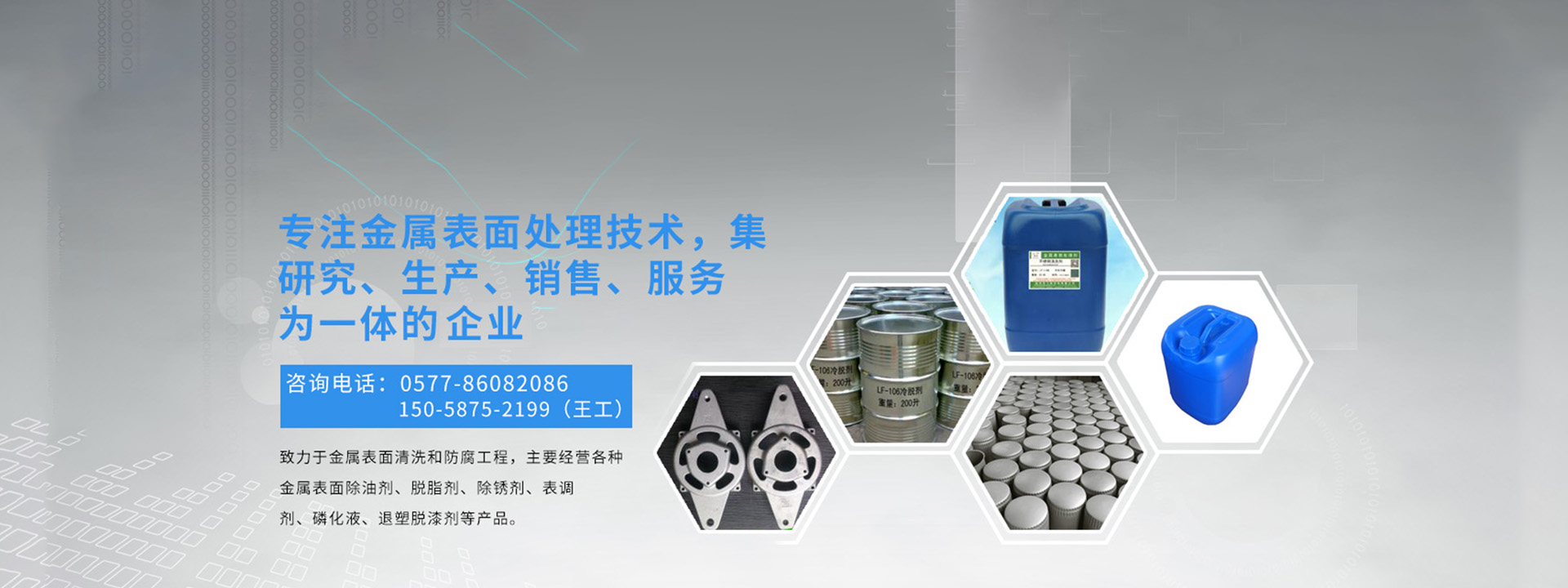 溫州龍飛環(huán)保科技有限公司是金屬表面處理技術(shù)集研究、生產(chǎn)、銷售、服務(wù)為一體的高新科技企業(yè),致力于金屬表面清洗和防腐工程,主要經(jīng)營(yíng)各種金屬表面除油劑、脫脂劑、除銹劑、表調(diào)劑、磷化液、退塑脫漆劑、除蠟水、防銹水防銹油、封閉劑、鈍化劑、發(fā)黑劑、著色劑、化學(xué)拋光劑、合成乳化劑、水處理劑等金屬表面處理劑,廣泛適用于產(chǎn)品的噴塑、噴漆、噴砂、電泳、電鍍前的表面處理以及表面終處理,現(xiàn)已涉通用機(jī)械零部件、汽摩配件、五金及電工工具、電器電腦、潔具閥門(mén)、教學(xué)儀器等。